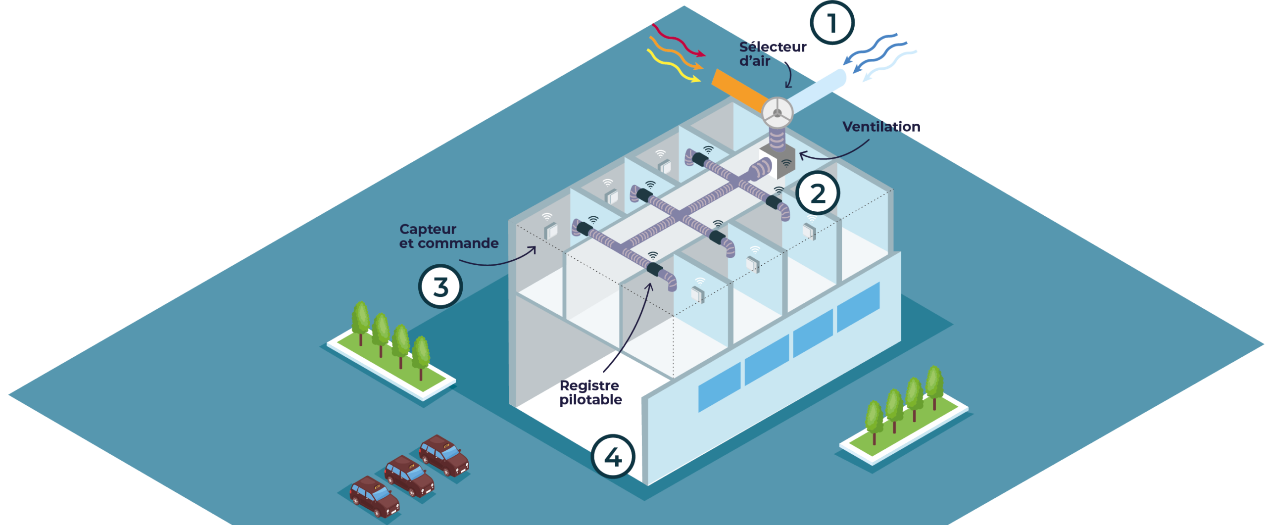 La ventilation intelligente sélectionne automatiquement les apports d’air les plus favorables pour abaisser la température intérieure.
